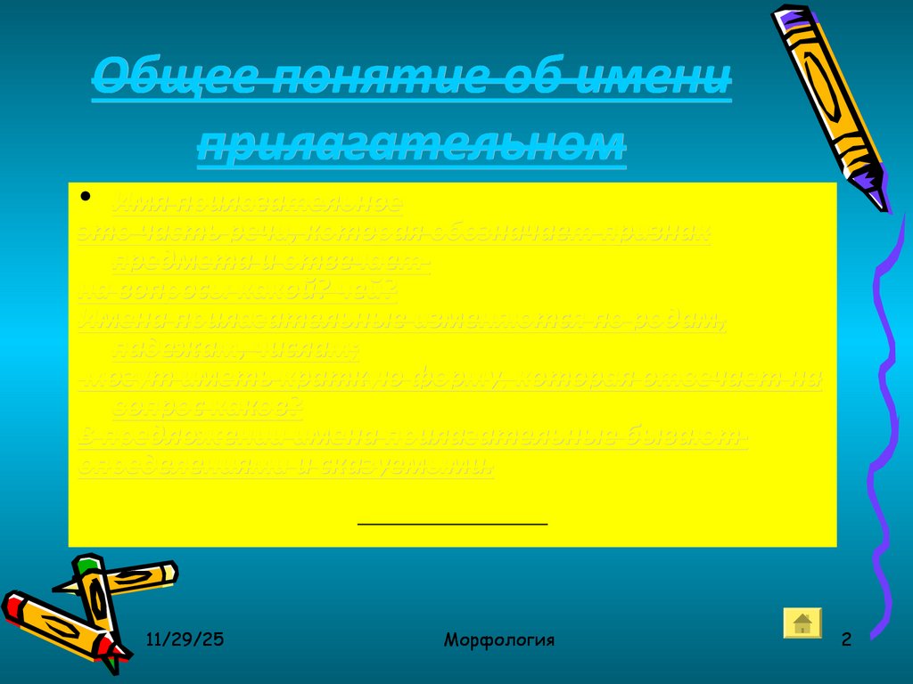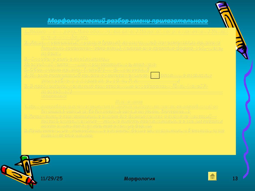 Морфологический разбор имени прилагательного1. Укажи часть речи. Что обозначает слово? На какой вопрос отвечает? Укажи