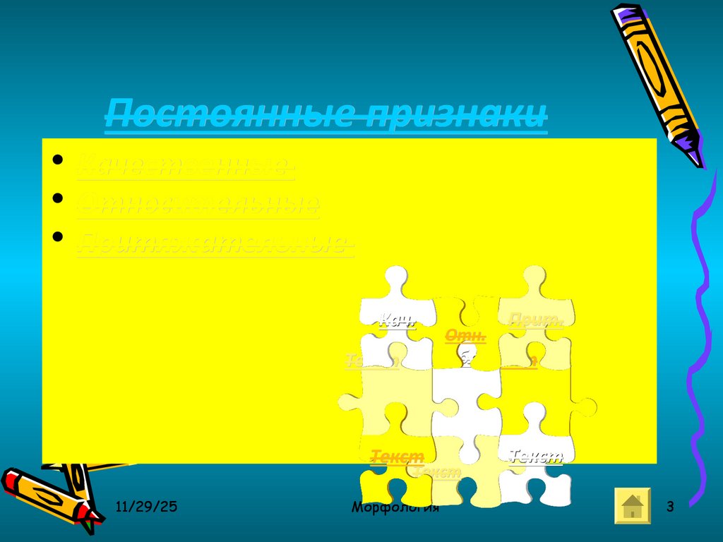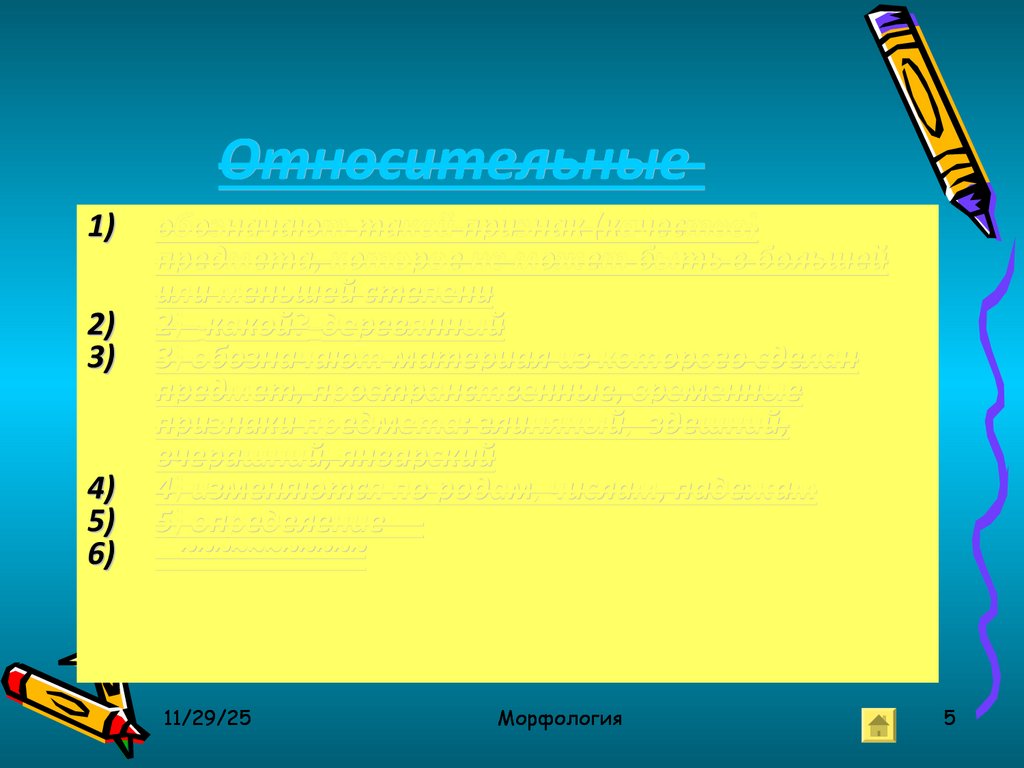 2. Имеет постоянный признак: относительное; непостоянные признаки: