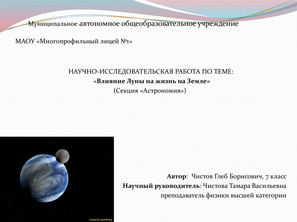 Муниципальное автономное общеобразовательное учреждениеМАОУ «Многопрофильный лицей №1»