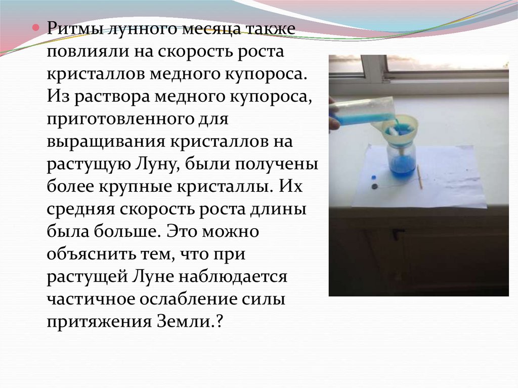 Предмет исследования: кристаллы медногокупороса, семена помидоров, состояние здоровья