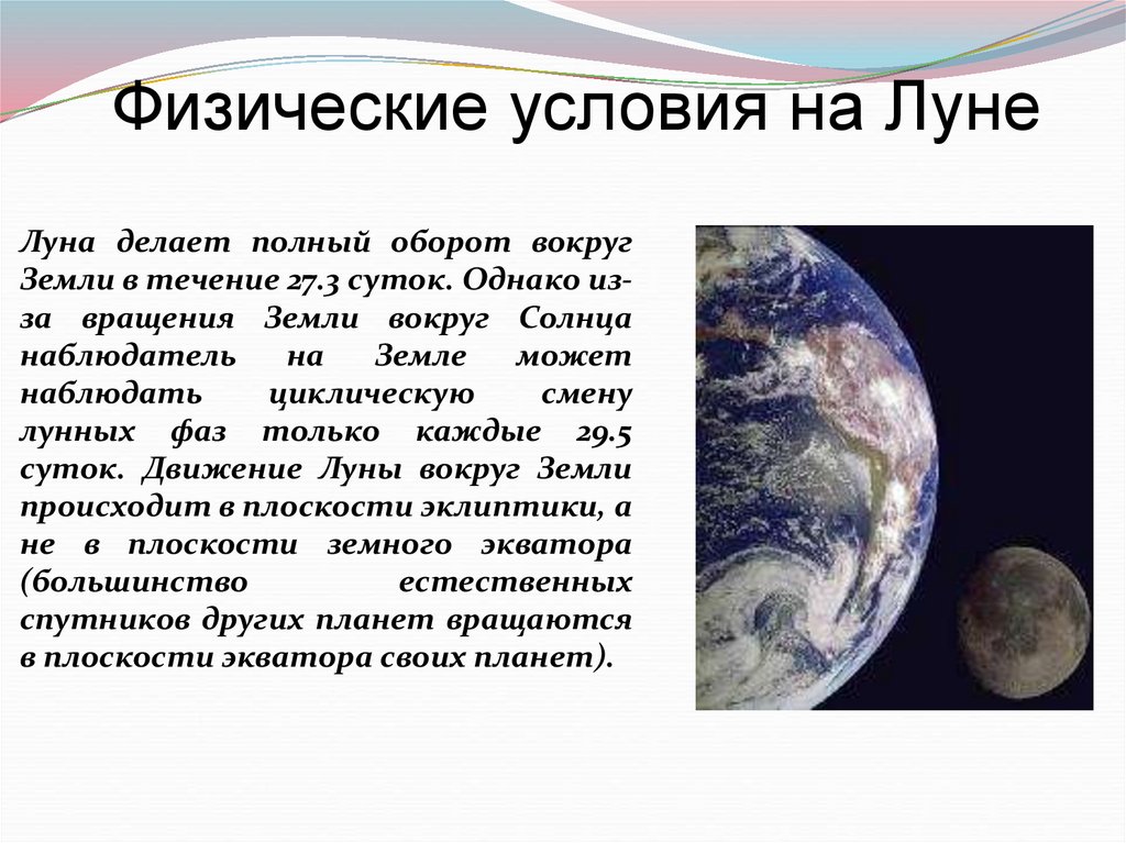 Физические условия на ЛунеЛуна делает полный оборот вокруг