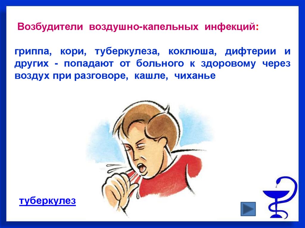 Возбудители воздушно-капельных инфекций:гриппа, кори, туберкулеза, коклюша, дифтерии и