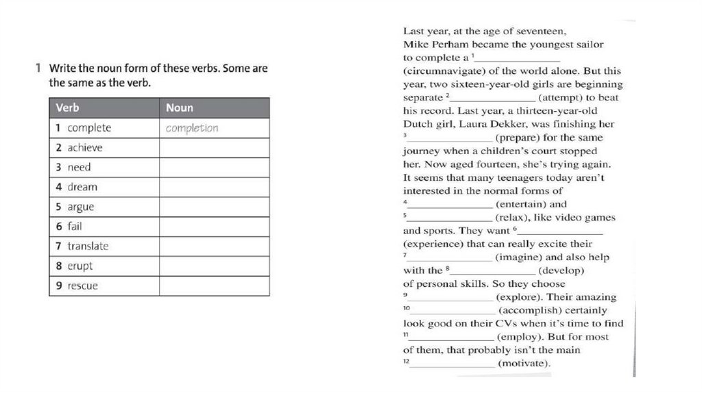educate (образовывать) → _______________inform (сообщать) → _______________