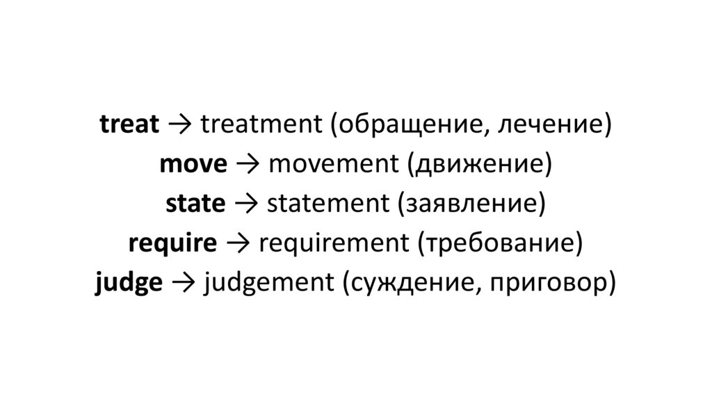 treat (обращаться, лечить) → _______________move (двигаться) → _______________