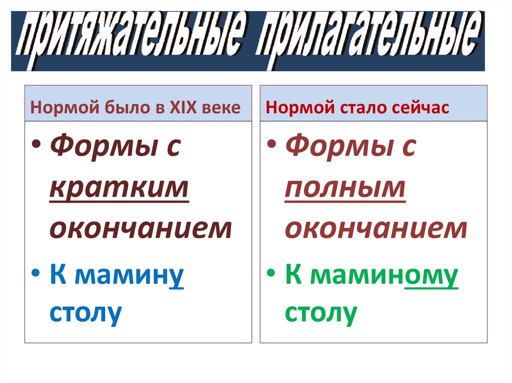 (мамин, бабушкин и т.п.) имели формы с кратким