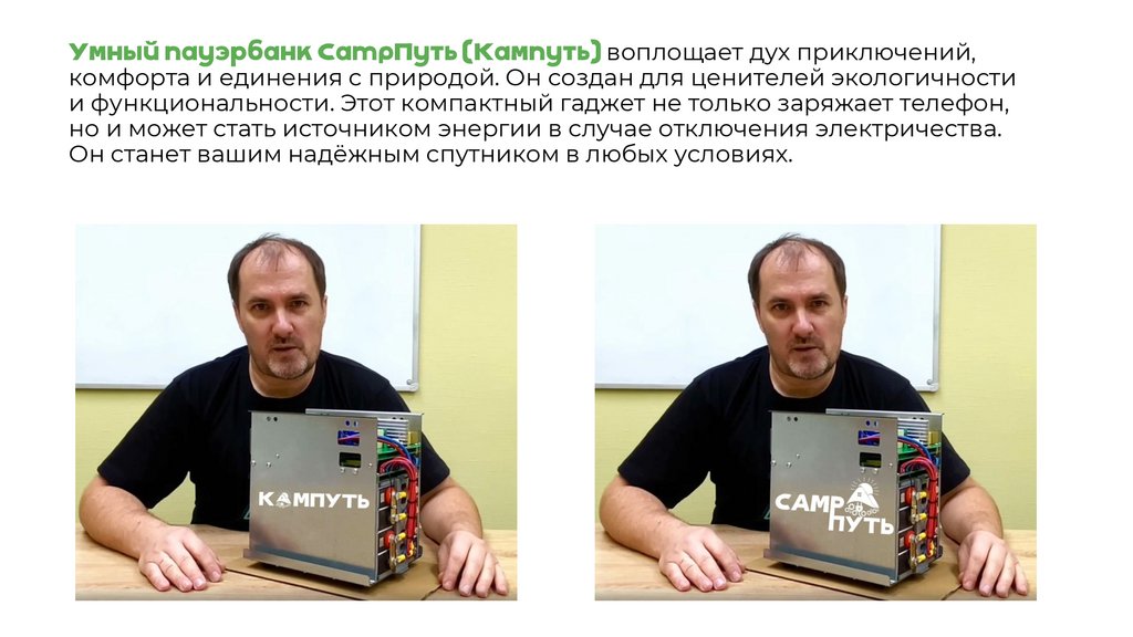 Умный пауэрбанк CampПуть (Кампуть) воплощает дух приключений,комфорта и единения с природой. Он создан для ценителей экологичности