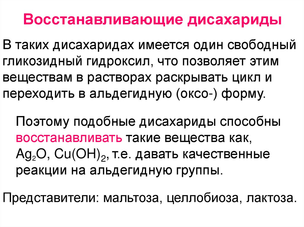Восстанавливающие дисахаридыВ таких дисахаридах имеется один свободный