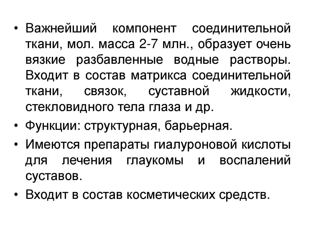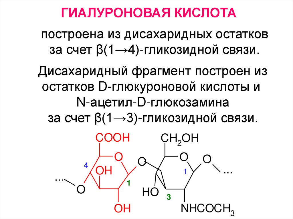 ГИАЛУРОНОВАЯ КИСЛОТАпостроена из дисахаридных остатков