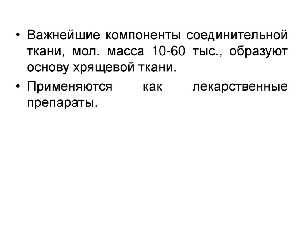 • Важнейшие компоненты соединительнойткани, мол. масса 10-60 тыс., образуют