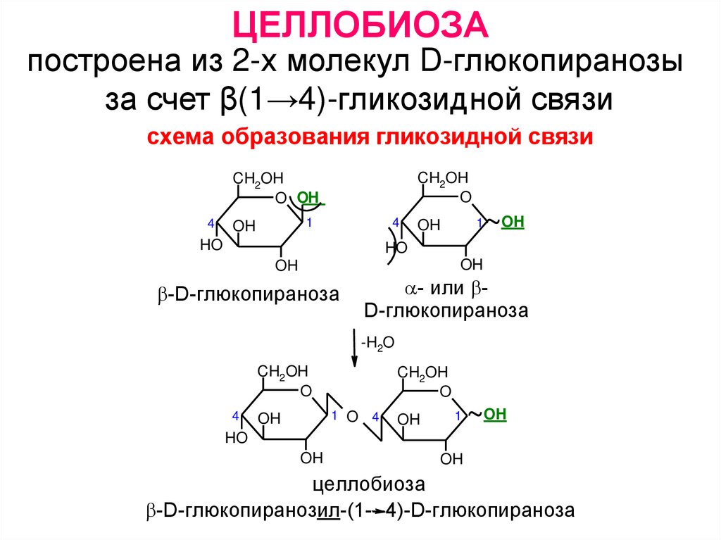 ЦЕЛЛОБИОЗАпостроена из 2-х молекул D-глюкопиранозы