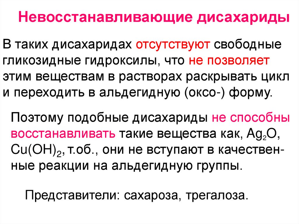Невосстанавливающие дисахаридыВ таких дисахаридах отсутствуют свободные