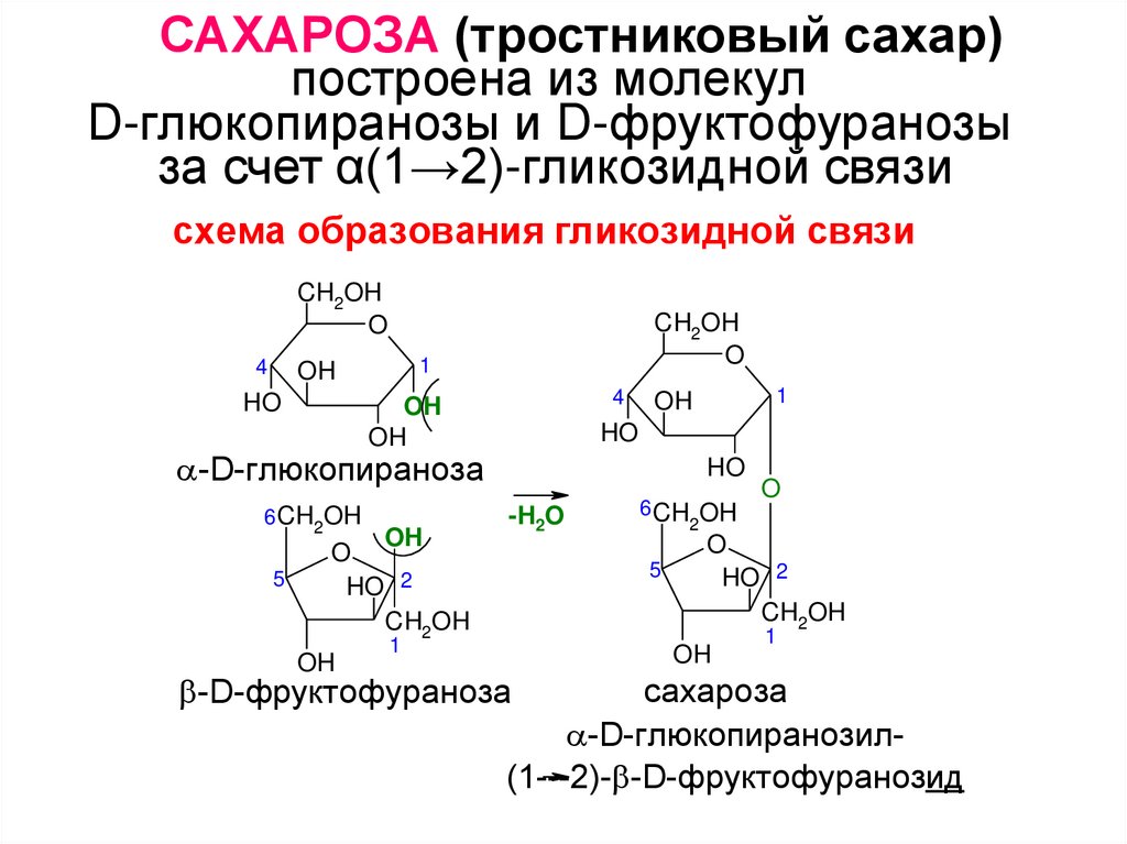 САХАРОЗА (тростниковый сахар)построена из молекул