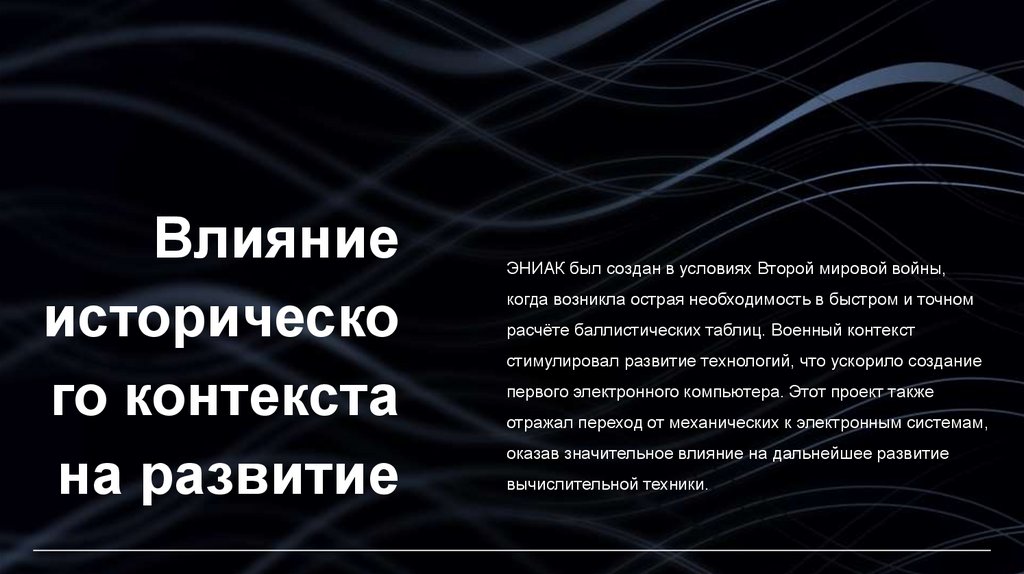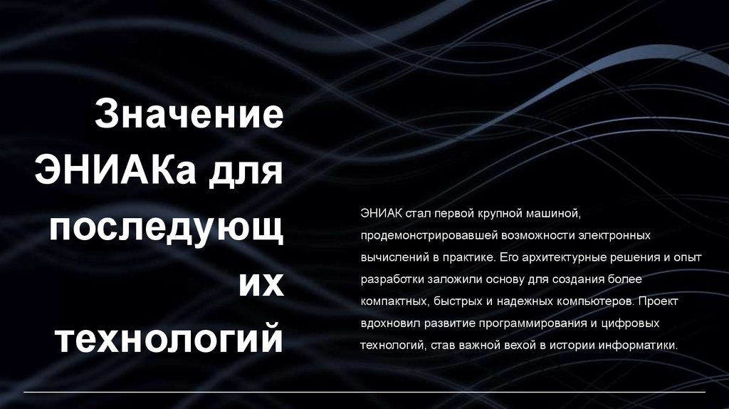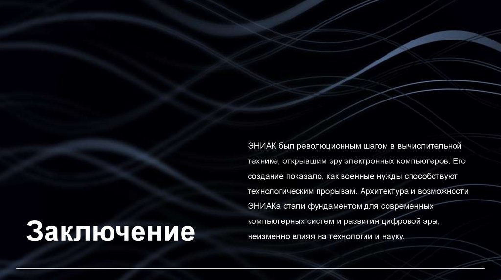 ЭНИАК был революционным шагом в вычислительнойтехнике, открывшим эру электронных компьютеров. Его