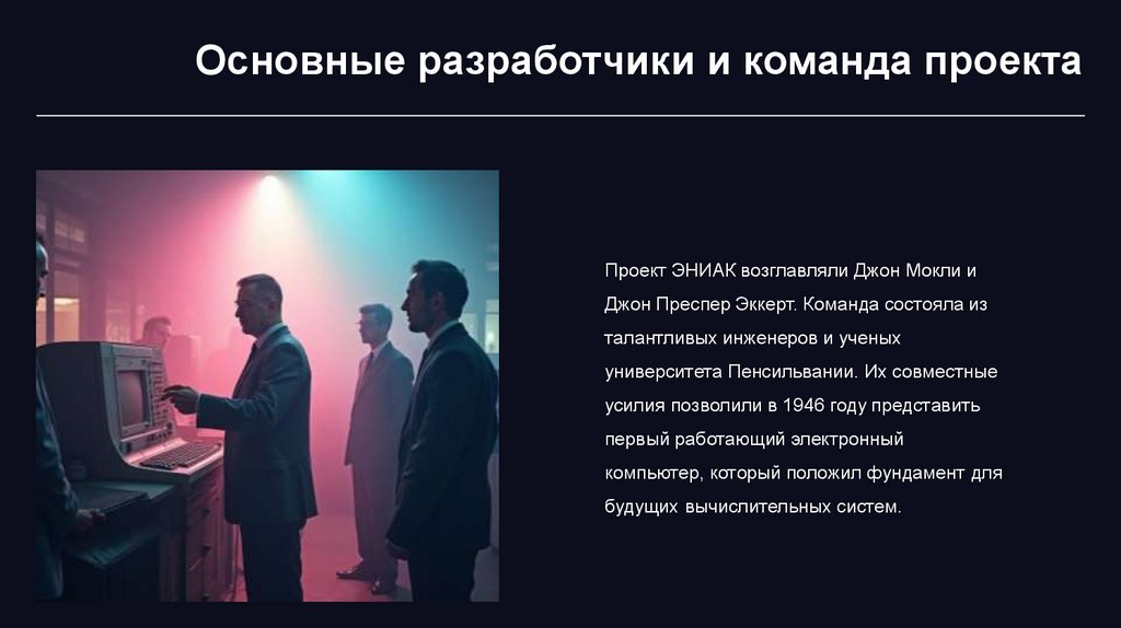 Основные разработчики и команда проектаПроект ЭНИАК возглавляли Джон Мокли и