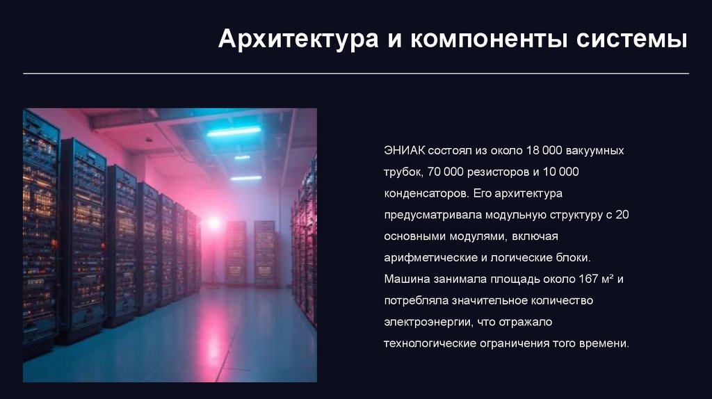 Архитектура и компоненты системыЭНИАК состоял из около 18 000 вакуумных