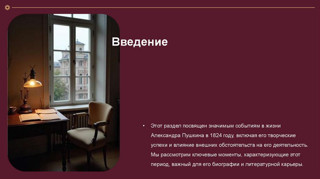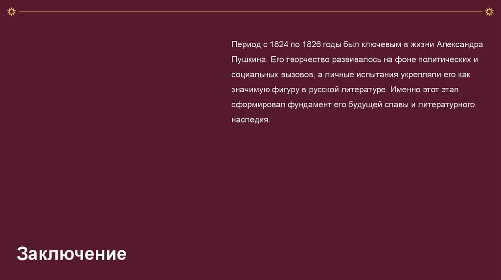 Период с 1824 по 1826 годы был ключевым в жизни АлександраПушкина. Его творчество развивалось на фоне политических и