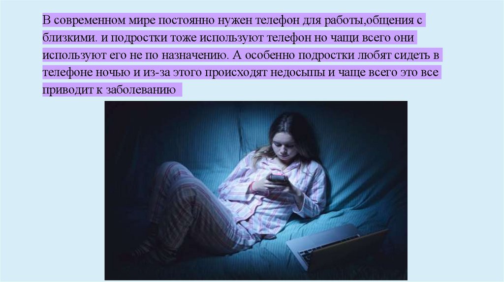телефоне ночью и из-за этого происходят недосыпы и чаще всего это все