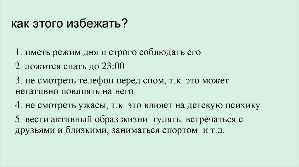 как этого избежать?1. иметь режим дня и строго соблюдать его