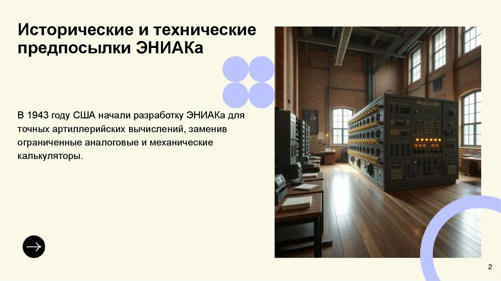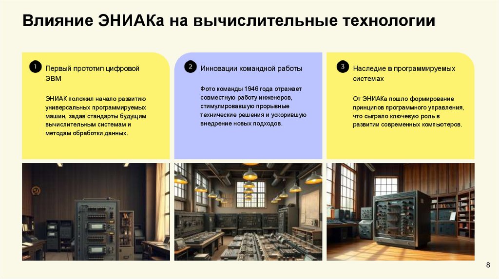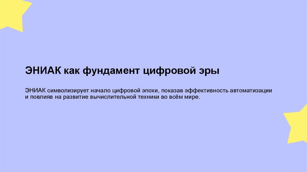 ЭНИАК как фундамент цифровой эрыЭНИАК символизирует начало цифровой эпохи, показав эффективность автоматизации