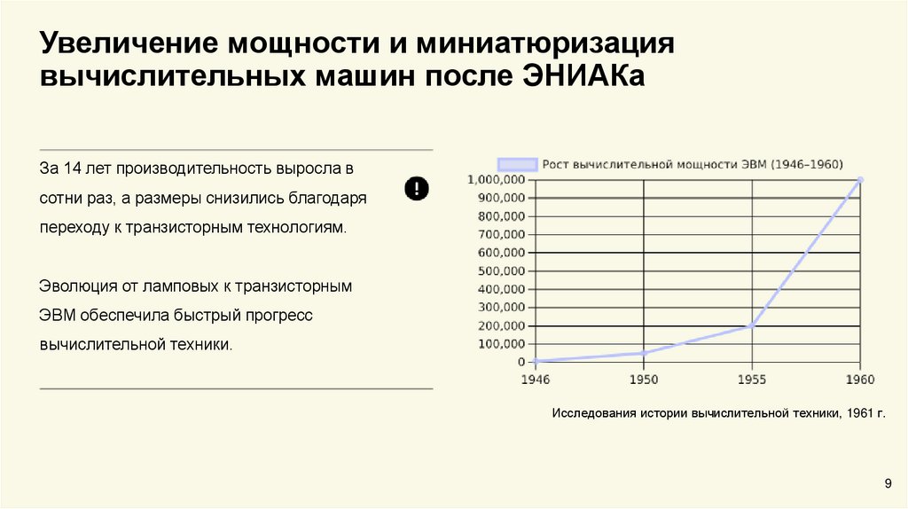 Увеличение мощности и миниатюризациявычислительных машин после ЭНИАКа