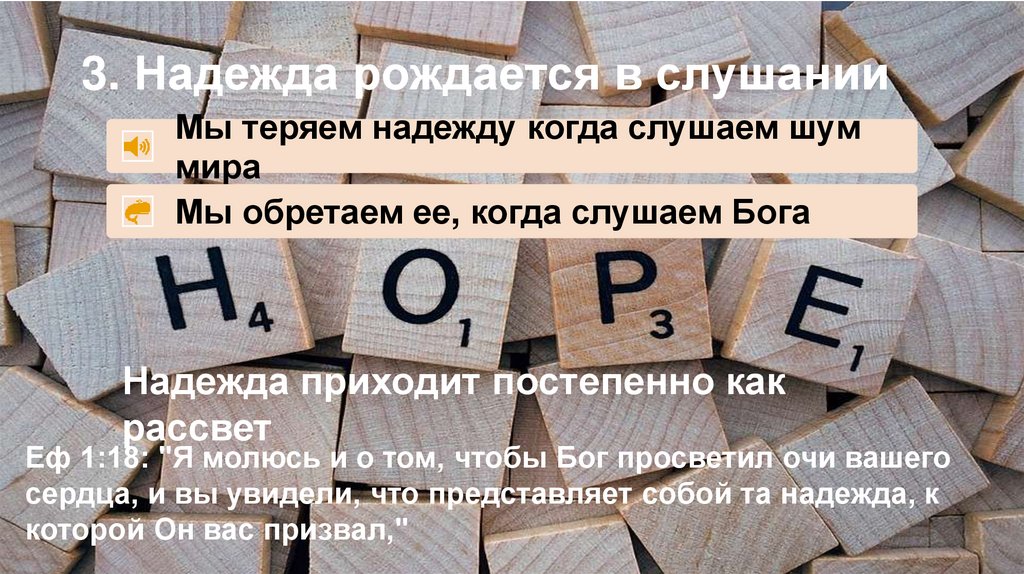 3. Надежда рождается в слушанииМы теряем надежду когда слушаем шум