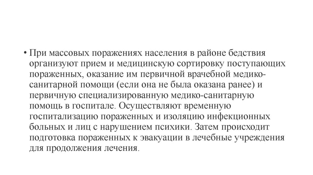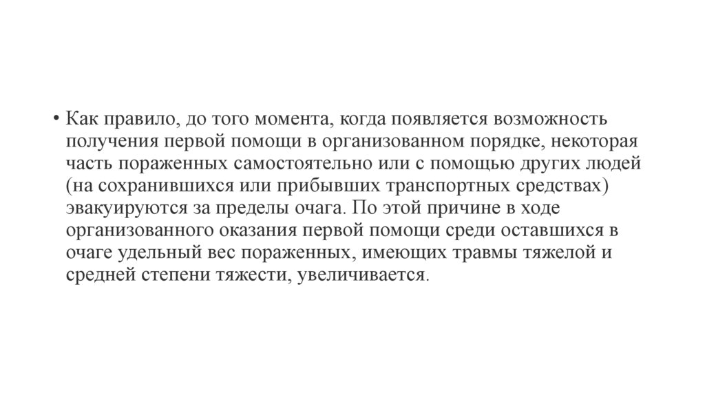 • Тяжелых пораженных вывозят из очага на приспособленном или