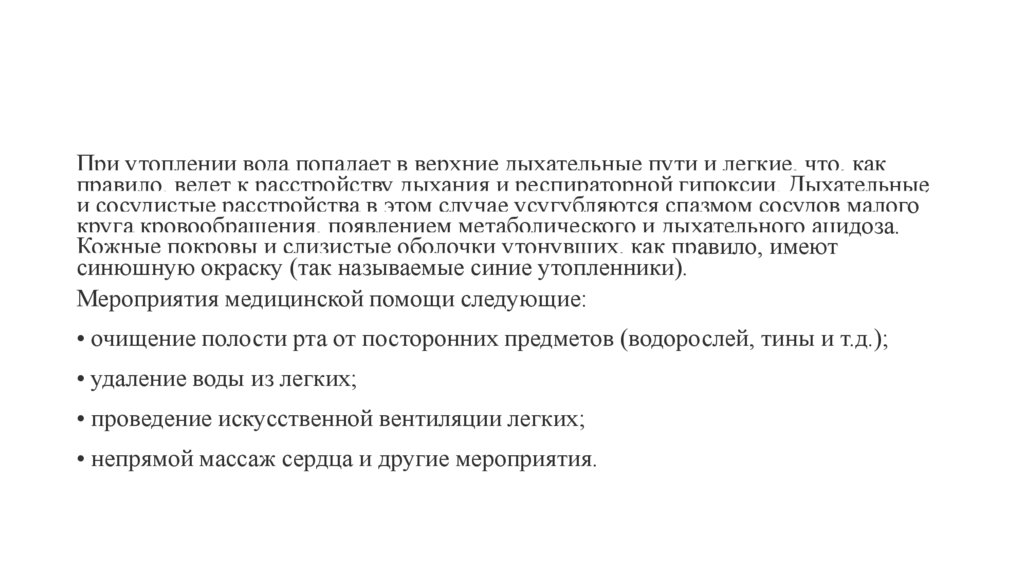 мероприятий (искусственная вентиляция легких, закрытый массаж сердца