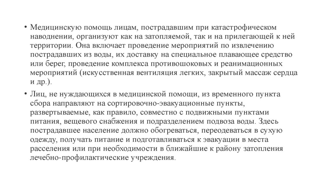 пострадавшее население должно обогреваться, переодеваться в сухую