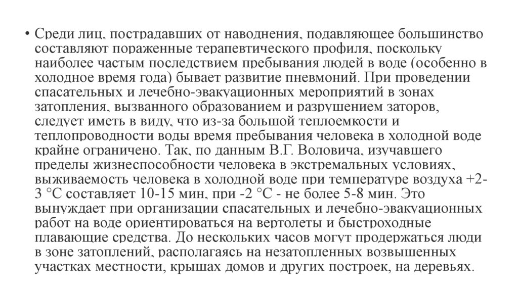 • Среди лиц, пострадавших от наводнения, подавляющее большинствосоставляют пораженные терапевтического профиля, поскольку