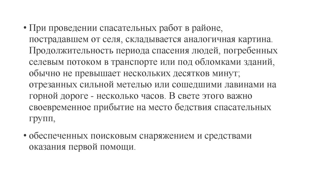 • При проведении спасательных работ в районе,пострадавшем от селя, складывается аналогичная картина.