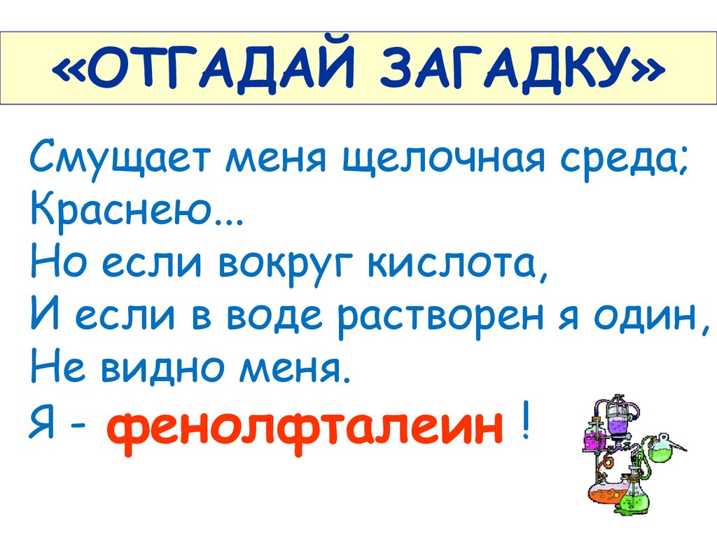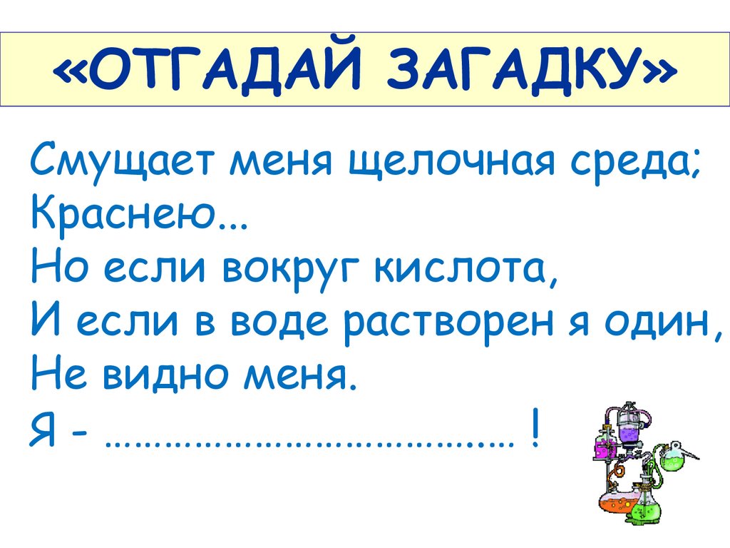 «ОТГАДАЙ ЗАГАДКУ»Смущает меня щелочная среда;