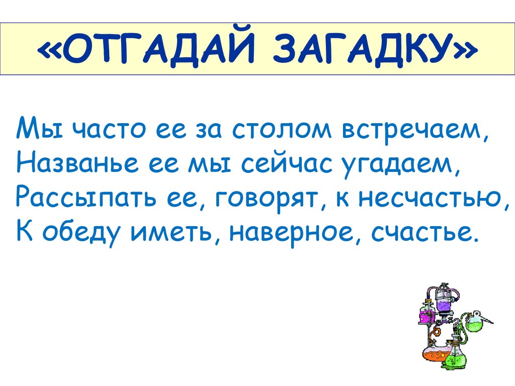 «ОТГАДАЙ ЗАГАДКУ»Мы часто ее за столом встречаем,
