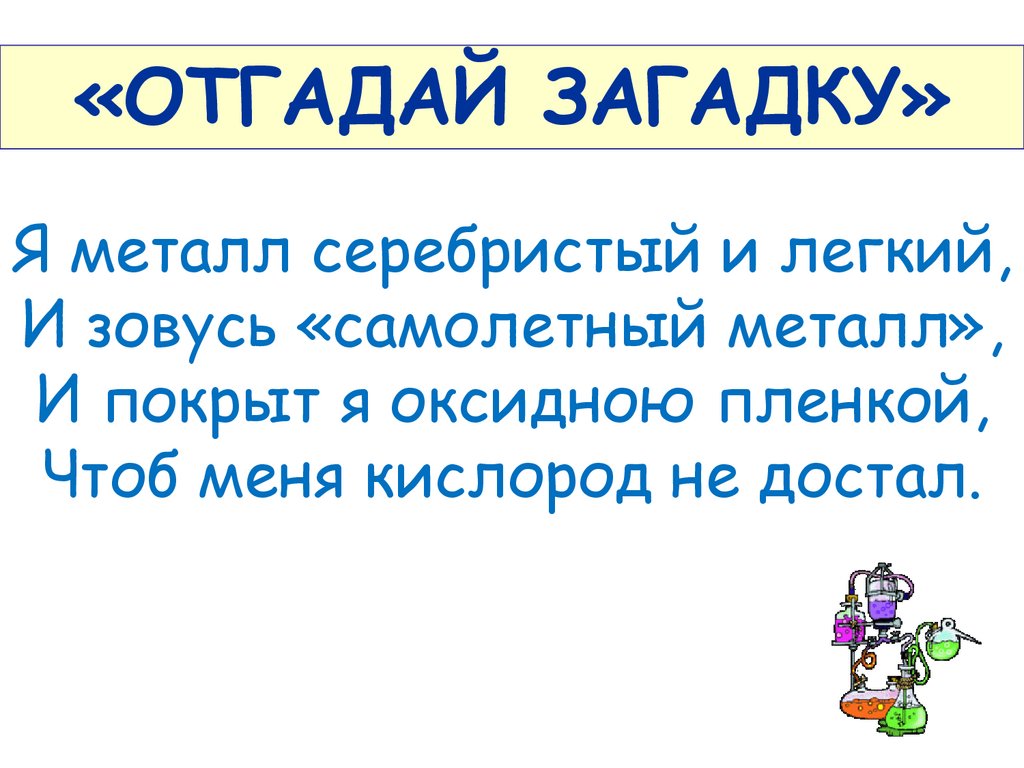 «ОТГАДАЙ ЗАГАДКУ»Я металл серебристый и легкий,