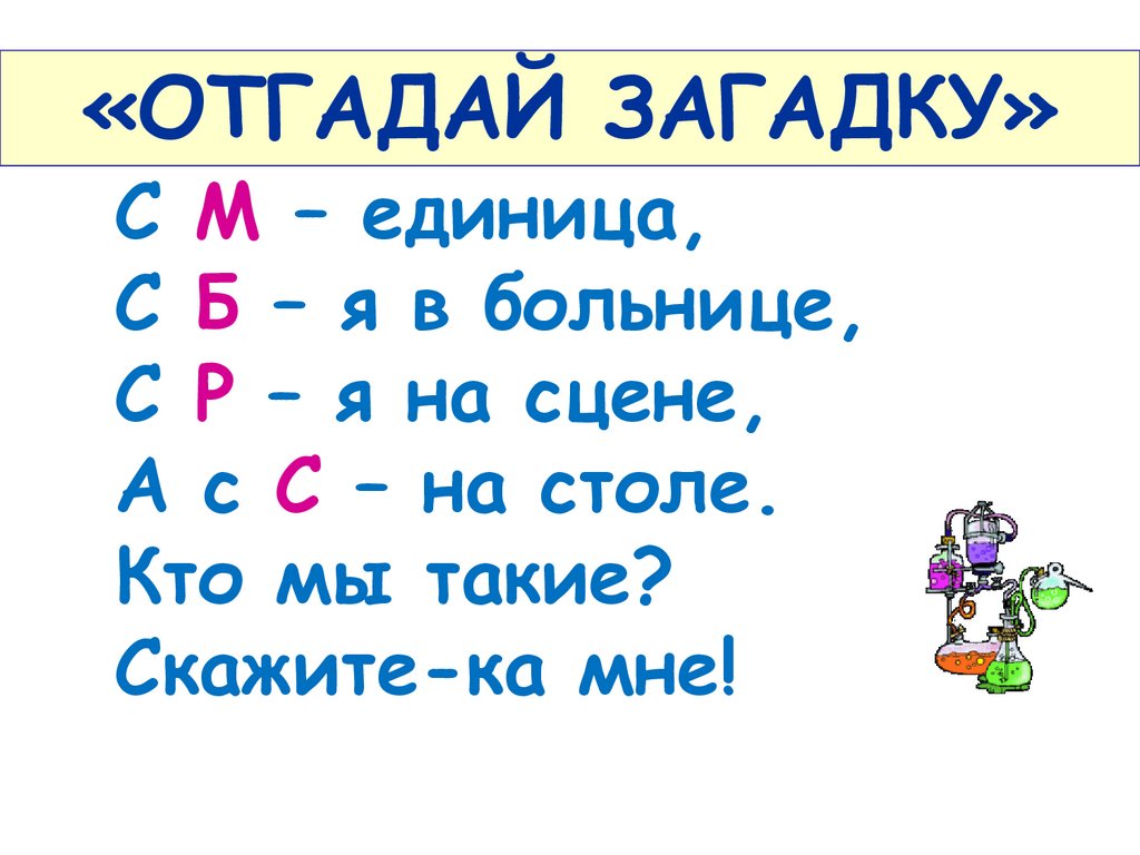 «ОТГАДАЙ ЗАГАДКУ»С М – единица,