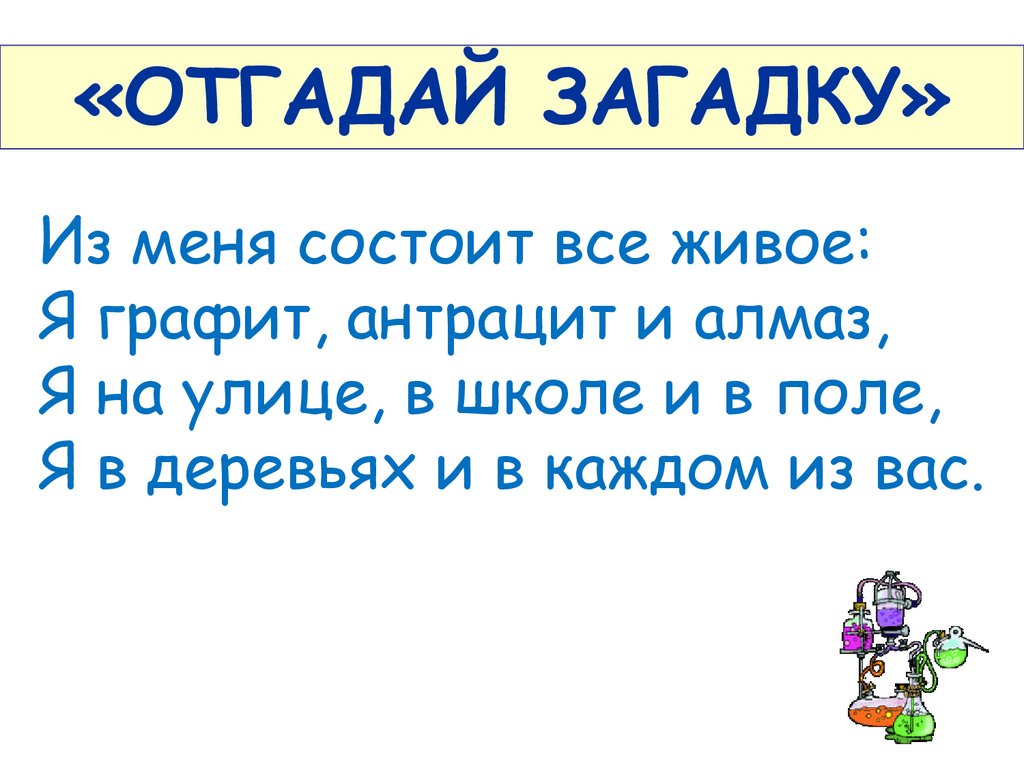 «ОТГАДАЙ ЗАГАДКУ»Из меня состоит все живое: