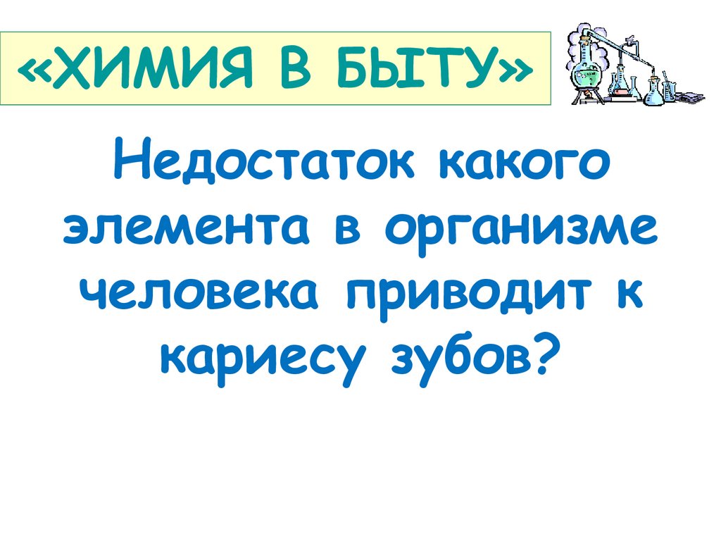 «ХИМИЯ В БЫТУ»Недостаток какого