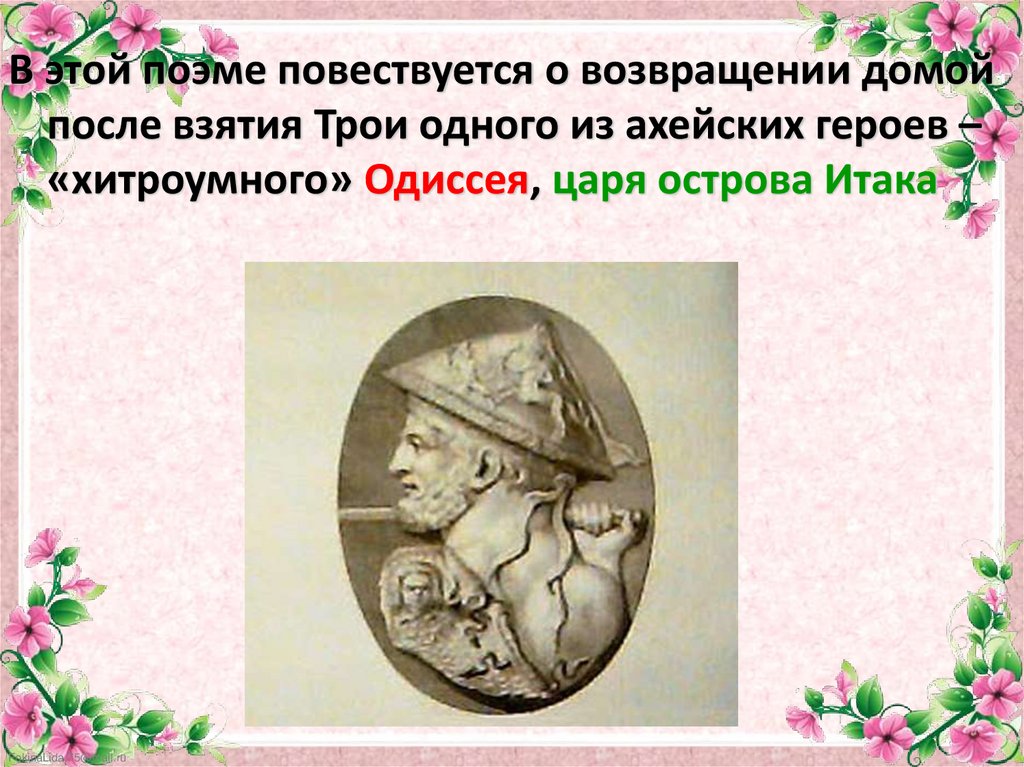 В этой поэме повествуется о возвращении домойпосле взятия Трои одного из ахейских героев –