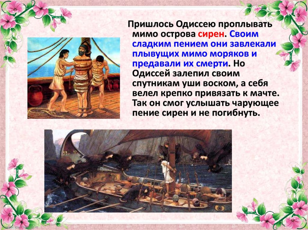 Пришлось Одиссею проплыватьмимо острова сирен. Своим