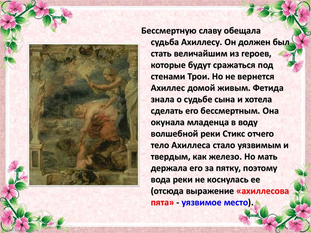 Бессмертную славу обещаласудьба Ахиллесу. Он должен был