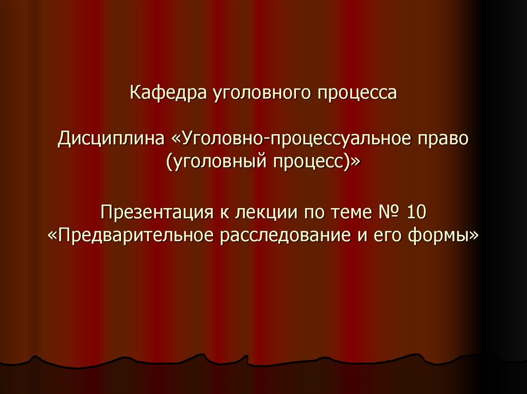 Кафедра уголовного процессаДисциплина «Уголовно-процессуальное право