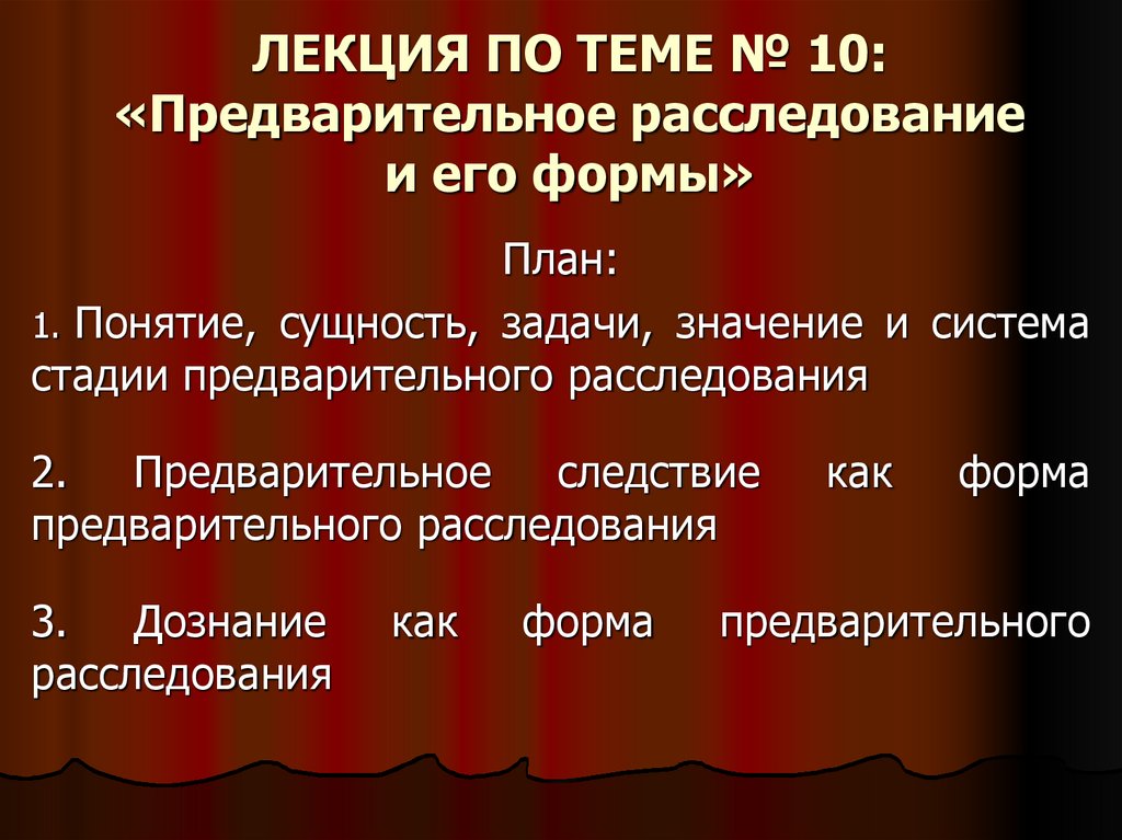 ЛЕКЦИЯ ПО ТЕМЕ № 10:«Предварительное расследование