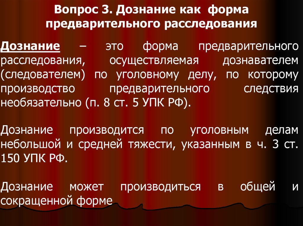 8. Предварительное следствие и дознание отличаются по следующим признакам: