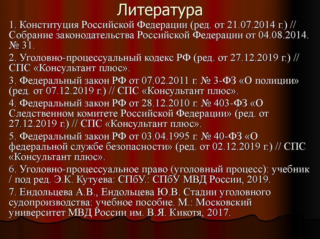 Литература1. Конституция Российской Федерации (ред. от 21.07.2014 г.) //