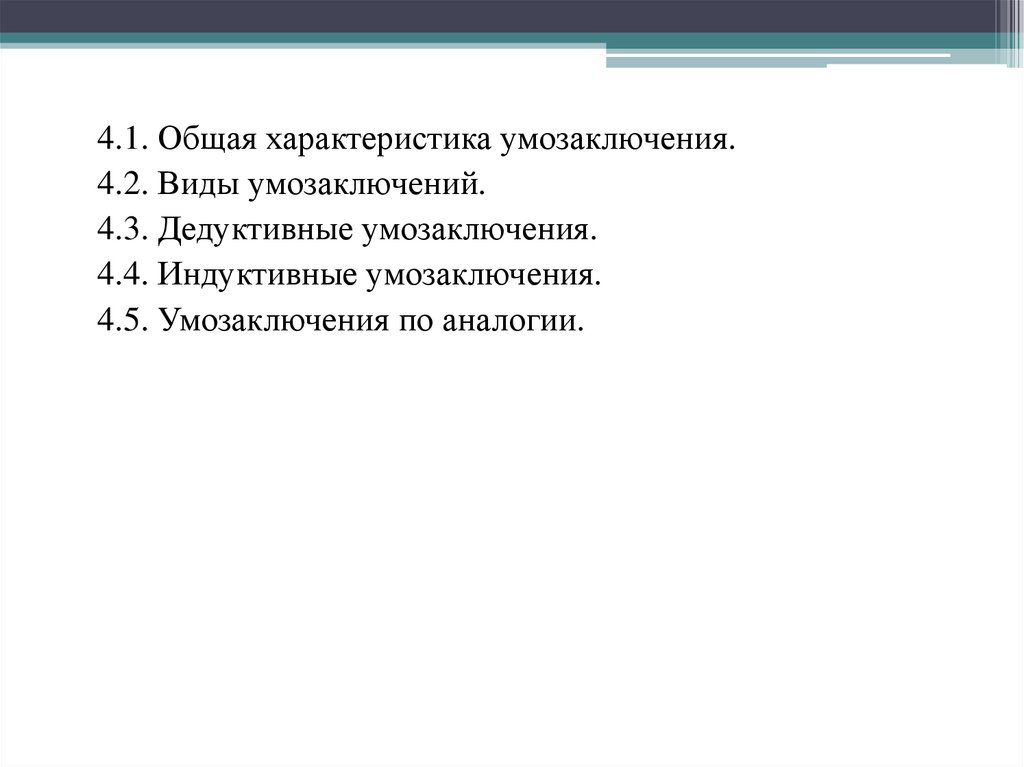 4.1. Общая характеристика умозаключения.4.2. Виды умозаключений.