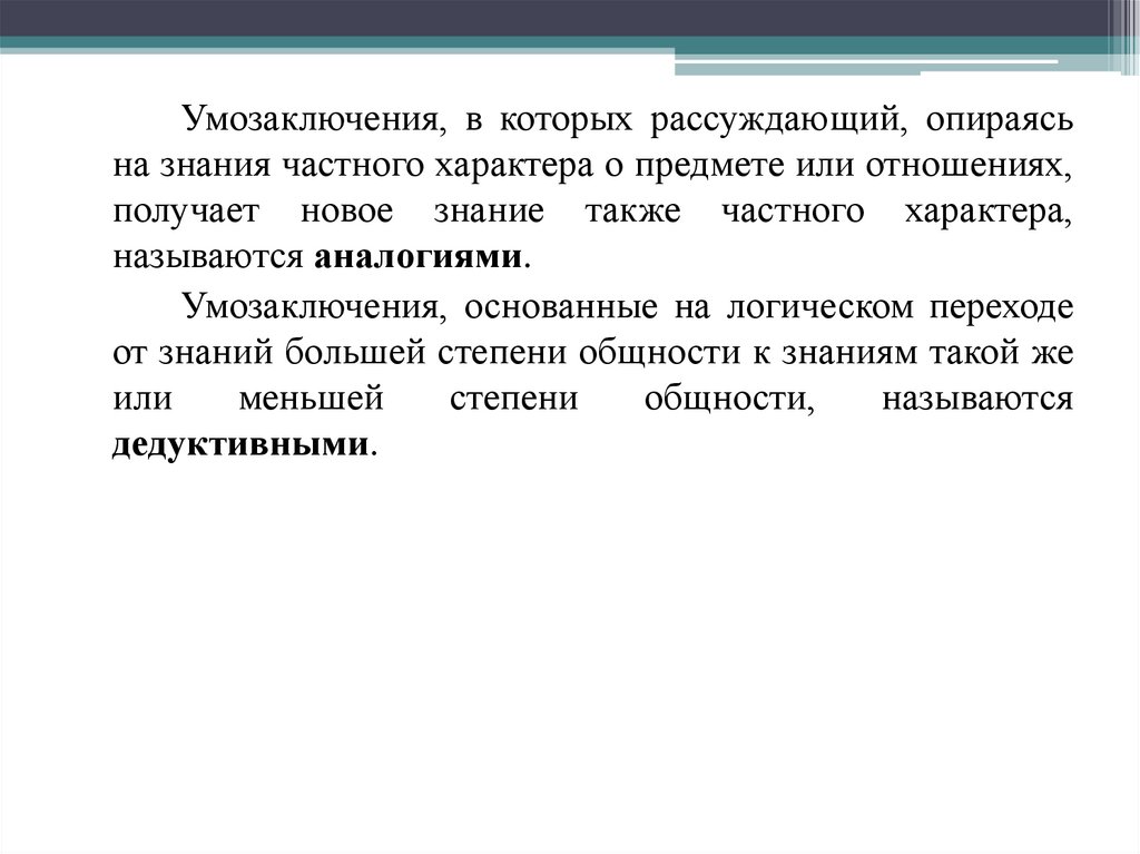 Умозаключения, в которых рассуждающий, опираясьна знания частного характера о предмете или отношениях,