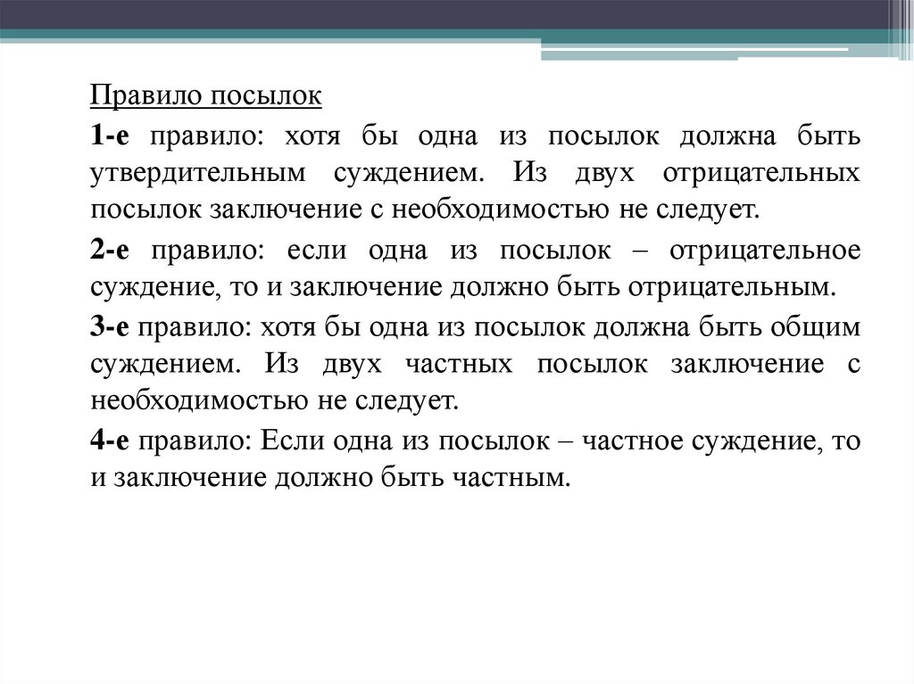 умозаключении 1 и 2-е суждения являются посылками, 3-е