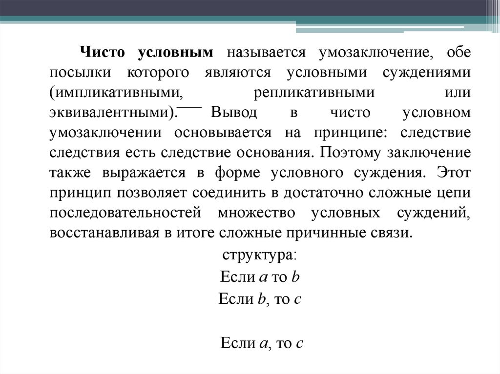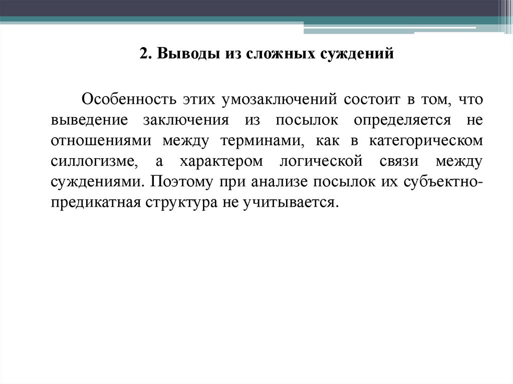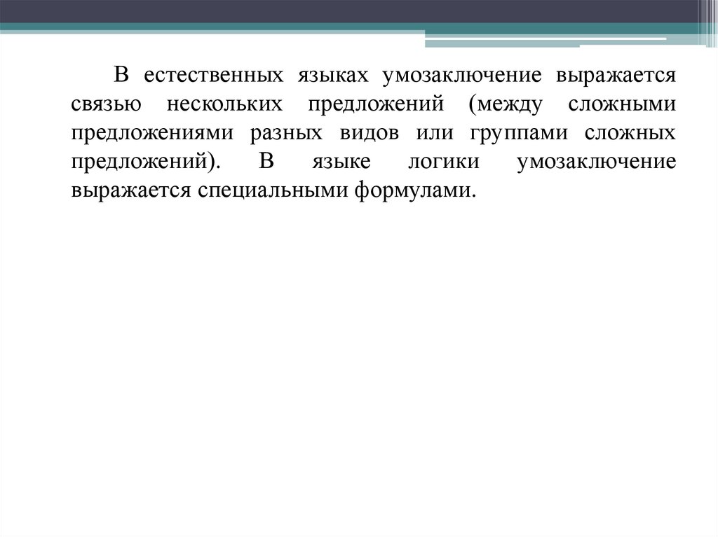 В естественных языках умозаключение выражаетсясвязью нескольких предложений (между сложными