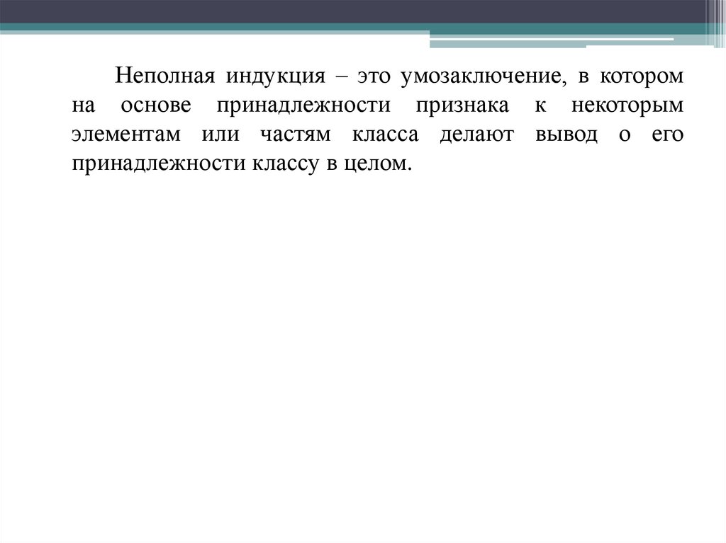 Неполная индукция – это умозаключение, в которомна основе принадлежности признака к некоторым