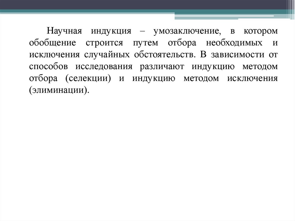 Научная индукция – умозаключение, в которомобобщение строится путем отбора необходимых и