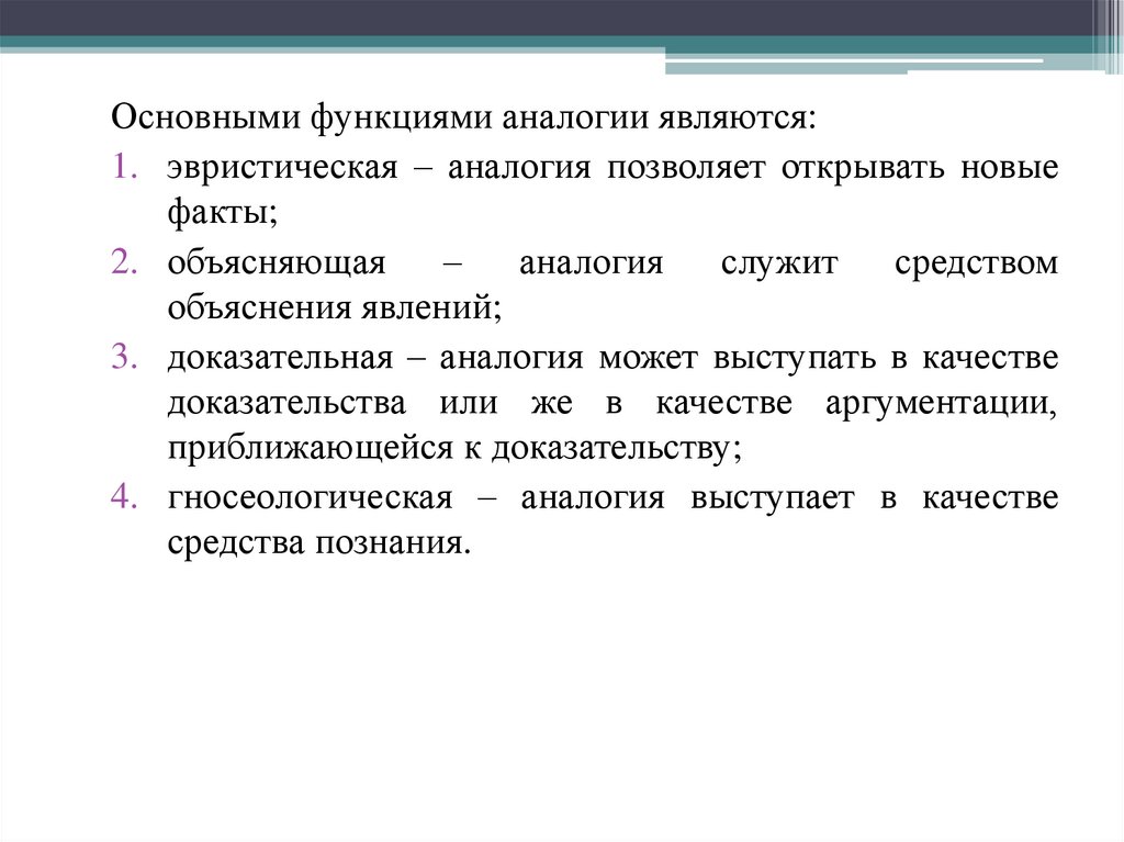 Основными функциями аналогии являются:1. эвристическая – аналогия позволяет открывать новые